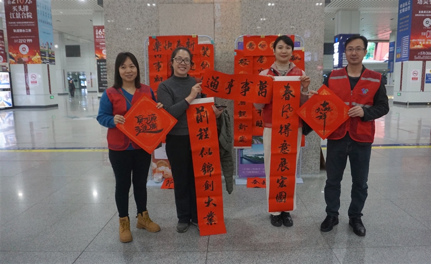 1月23日上午,軌道地產(chǎn)建筑公司黨支部與南湖街道屯里社區(qū)黨總支攜手,在南寧火車東站南廣場開展一場別開生面的送春聯(lián)、贈(zèng)福字活動(dòng)。社區(qū)黨員與企業(yè)黨員志愿者積極參與,為奔波在春運(yùn)途中的人們送去滿滿溫暖與新春祝福。