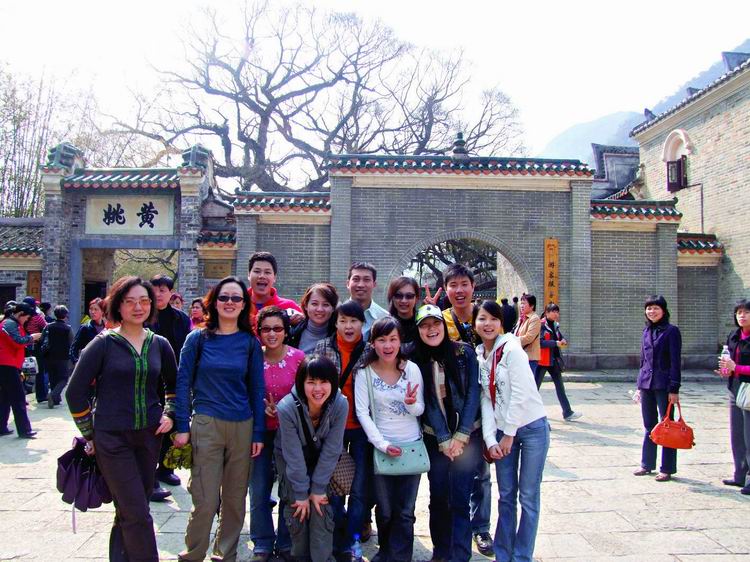 第三日清晨,整裝待發(fā)八點(diǎn)前往黃姚古鎮(zhèn)。賀州是粵東的一座新興城市,而黃姚,卻有著近千年的厚重。從古鎮(zhèn)入口前左邊的一條岔路走進(jìn)去,首先觸目的便是一條清澈的小溪、一棵參天的古榕樹,我們開(kāi)始細(xì)細(xì)觀賞這個(gè)小鎮(zhèn)。古榕的軀干伸向小溪,又從空中垂下縷縷氣根,與水中的倒影連為一體。溪邊水井里清可見(jiàn)底,偶有小魚游動(dòng)。據(jù)說(shuō)黃姚是按九宮八卦陣式布局,鎮(zhèn)上的石板街有8條,共99999塊青石板,最早鋪砌于清順治年間。年代久遠(yuǎn),不知有多少人走過(guò),青石板已被磨得像鏡子般光滑,隱約泛著人影。橋下的姚江,如今看水依舊清碧,可是繁華不再,顯赫的牌匾也只能靜靜地訴說(shuō)著昔日的輝煌。石板路的小村落很安靜,人們過(guò)著日常的生活,村婦們?cè)诰^溪邊,淘菜洗衣,交流信息,菜渣、閑話都隨溪水流去,并不對(duì)外來(lái)的游客有格外的好奇。孩子們快樂(lè)地嬉戲著,在那些蜿蜒的巷子里不時(shí)冒出他們快樂(lè)的喧嘩。宗祠府第這樣的舊時(shí)輝煌不經(jīng)意地散布于鎮(zhèn)上的民居之中,亭閣前的聯(lián)匾,記錄著文人騷客對(duì)黃姚的鐘愛(ài),只是年代遠(yuǎn)去,如今物是人非。陽(yáng)光下的青石板路上有時(shí)候也會(huì)躺著狗或者貓,你從它們身上跨過(guò)去的時(shí)候,它們會(huì)懶懶地翻翻眼皮,然后繼續(xù)睡在陽(yáng)光里。雞們顯得勤快些,會(huì)邁著方步走在你前面東看看西瞅瞅,如果你不急,它會(huì)一直走在你前面,時(shí)間對(duì)它們沒(méi)有任何意義。還有那些老房子,任何一座都可能藏著一個(gè)故事。結(jié)了蛛網(wǎng)的窗欞恐怕已有了幾百年的歷史,但是沒(méi)有人把這當(dāng)成了不得的事情,一切如常,平靜隨意。